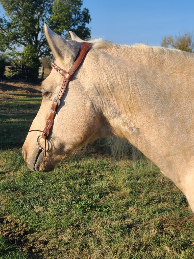 Un bridon simplifié à son maximum ! Têtière, frontal, muserolle : tout en une épaisseur.