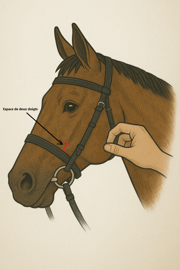 Pour régler un bridon correctement, il faut s’assurer que les différents éléments ne sont ni trop lâches (sinon le bridon risque de tomber) ni trop serrés (sinon vous allez bloquer le mouvement de la tête, impacter le reste des chaînes musculaires, endommager les nerfs et ralentir la circulation sanguine … tout un programme assez peu confortable pour votre cheval).