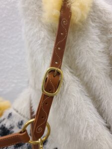 Il faut parfois remplacer une pièce qui a cédé sous un coup de traction du cheval (bien souvent le cuir se déchire au niveau des trous ou des boucles). Sans avoir à changer l’intégralité du bridon, nous pouvons recoudre les boucleteaux.